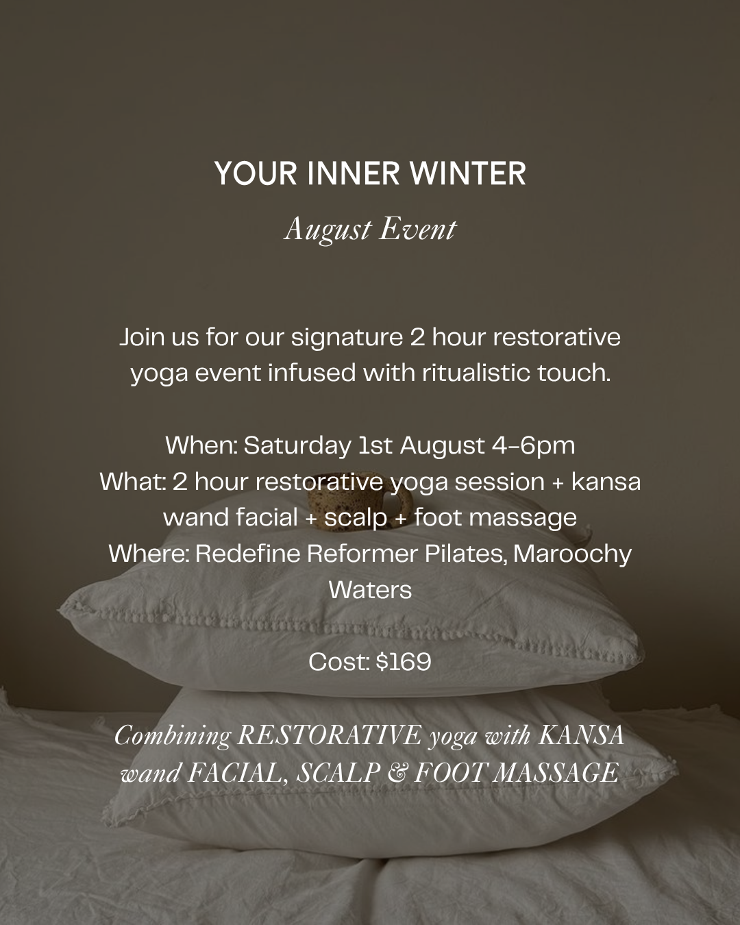 Join myself & Neralee from Flow Facials for an afternoon of restorative yoga and ritualistic touch.